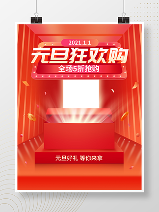 - 原创元旦狂欢购促销商场购物活动海报 2021-01-01