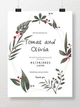 - 小清新植物边框婚礼邀请函简约海报背景 2021-01-01